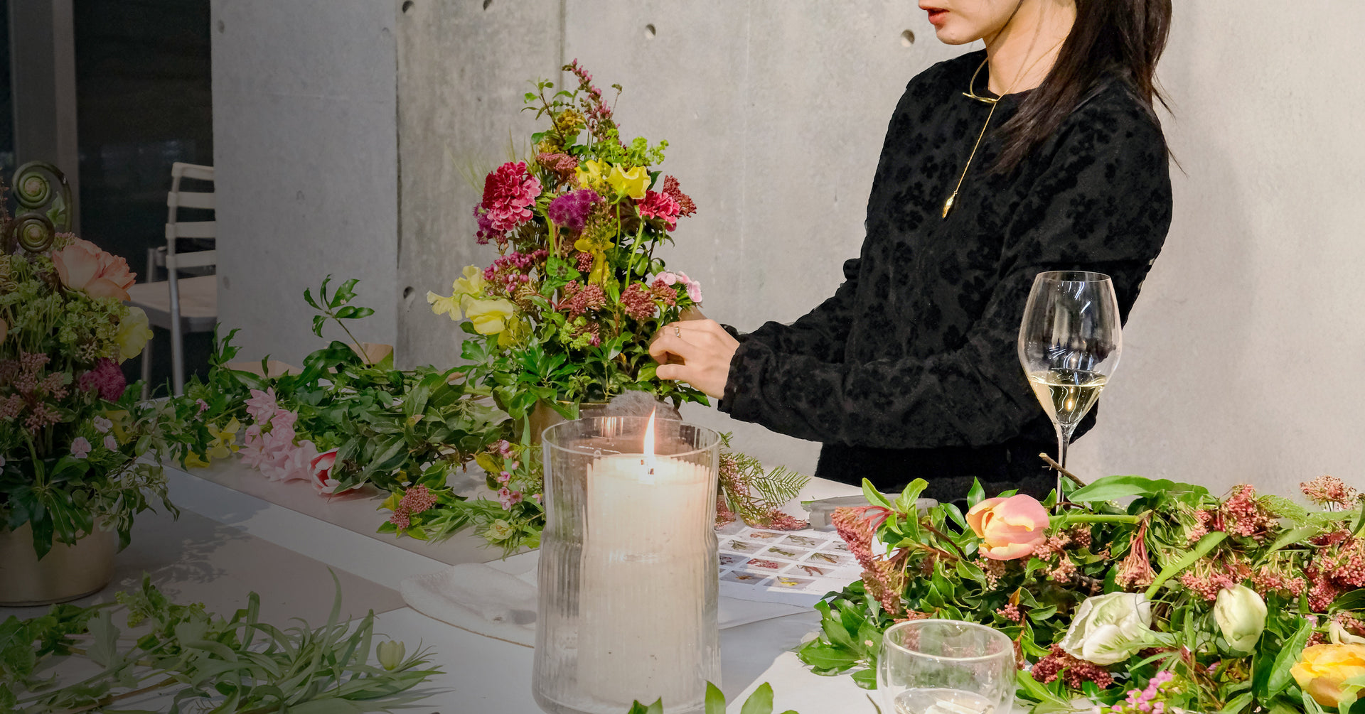In my flower lessons, I value creating a space where time feels free and creative, encouraging participants to connect honestly with their own sensibilities. Within the brand’s unique worldview, I enjoy working with materials that allow individuality to shine, offering arrangements that are striking and one of a kind. My lessons are designed not only to build technical skills, but also to let people experience the joy of expressing themselves through flowers. I work with a wide range of students—from beginners to advanced learners, and even those aiming to become professionals.